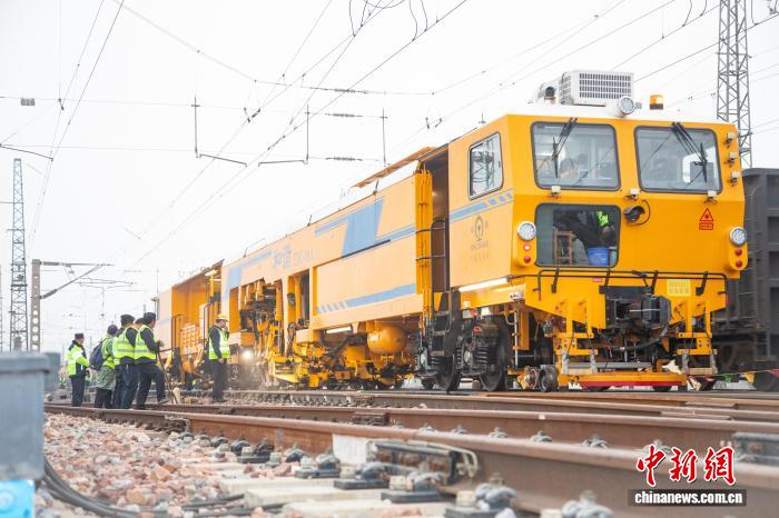 图为年夜机捣固车对于线道停止捣固。王阔宁磊 摄