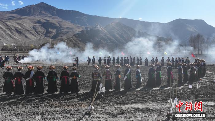 图为西躲山北市乃东区门中岗社区秋耕典礼现场。中新社记者 贡嘎去紧 摄