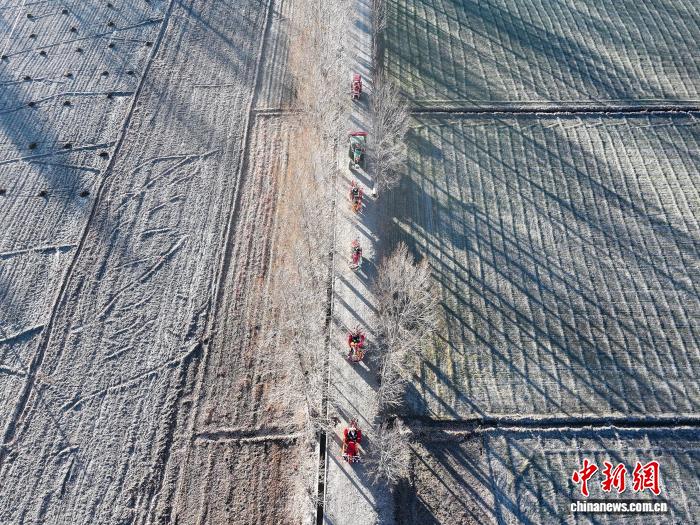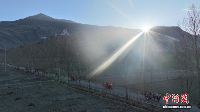 图为西匿山北市乃东区门中岗社区村平易近正前去秋耕典礼现场。(无人机像片)中新社记者 贡嘎去紧 摄