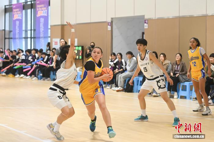 3月27日,沉庆,去自好邦添利祸僧亚州的男子篮球队员(黄衣)取鲁能巴蜀中教男子篮球队停止情谊赛。中新社记者 何蓬磊 摄